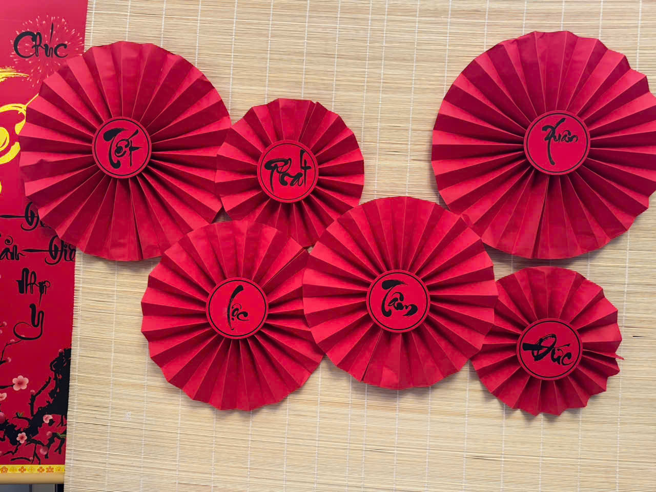 1 Bộ gồm 6 Quạt giấy cho 3 kích thước 30 cm / 25 cm / 20 cm ( Mỗi kích thước 2 cái ), kèm keo dán