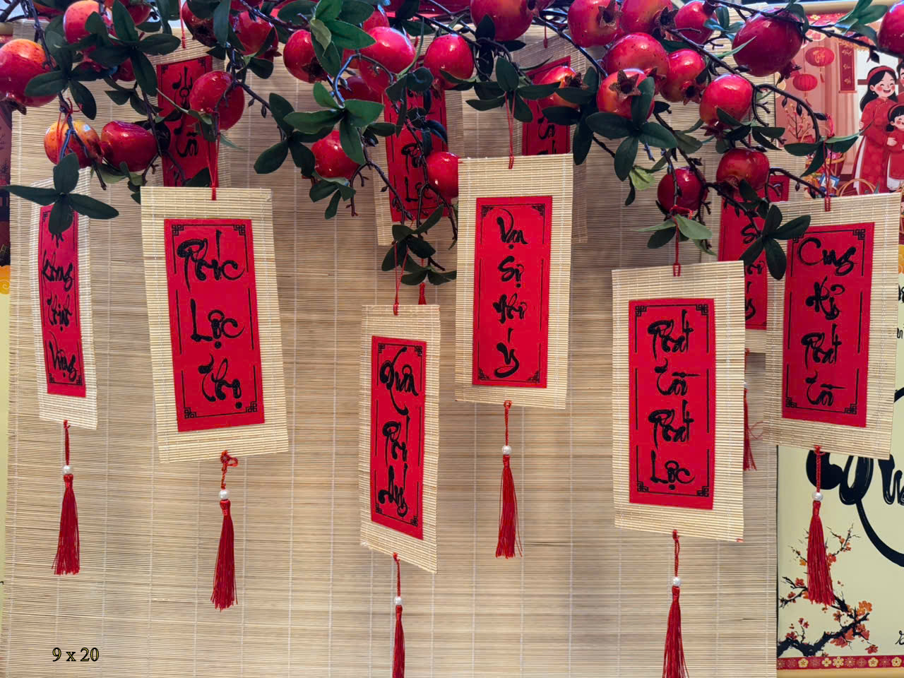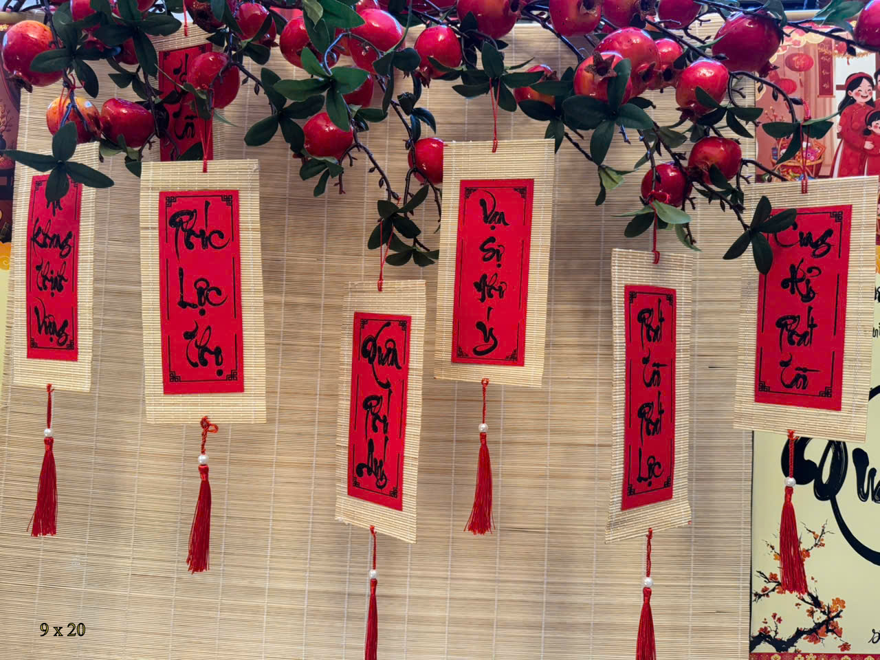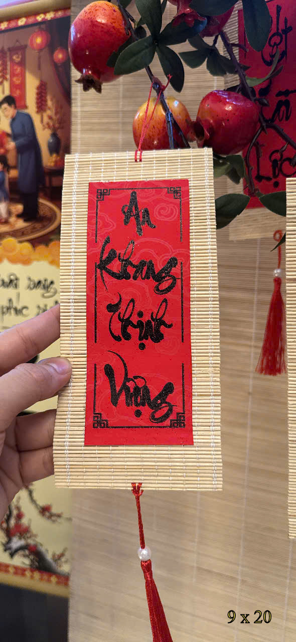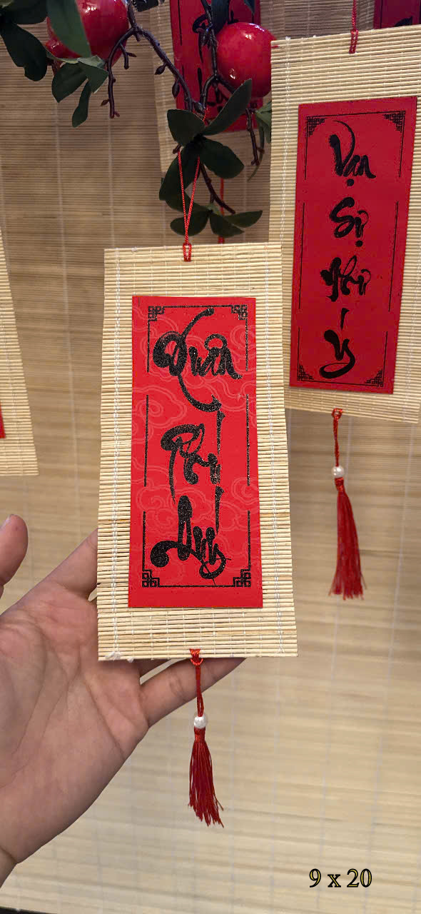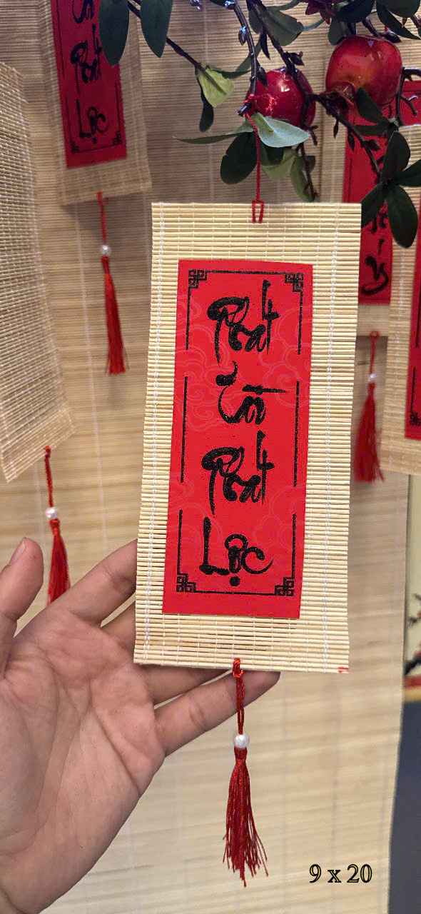 Set 10 Mành Tre Thư Pháp - 9x20cm LỚN Chất liệu: mành tre Kích thước: 5cm x 11cm Màu sắc: set gồm nhiều chữ