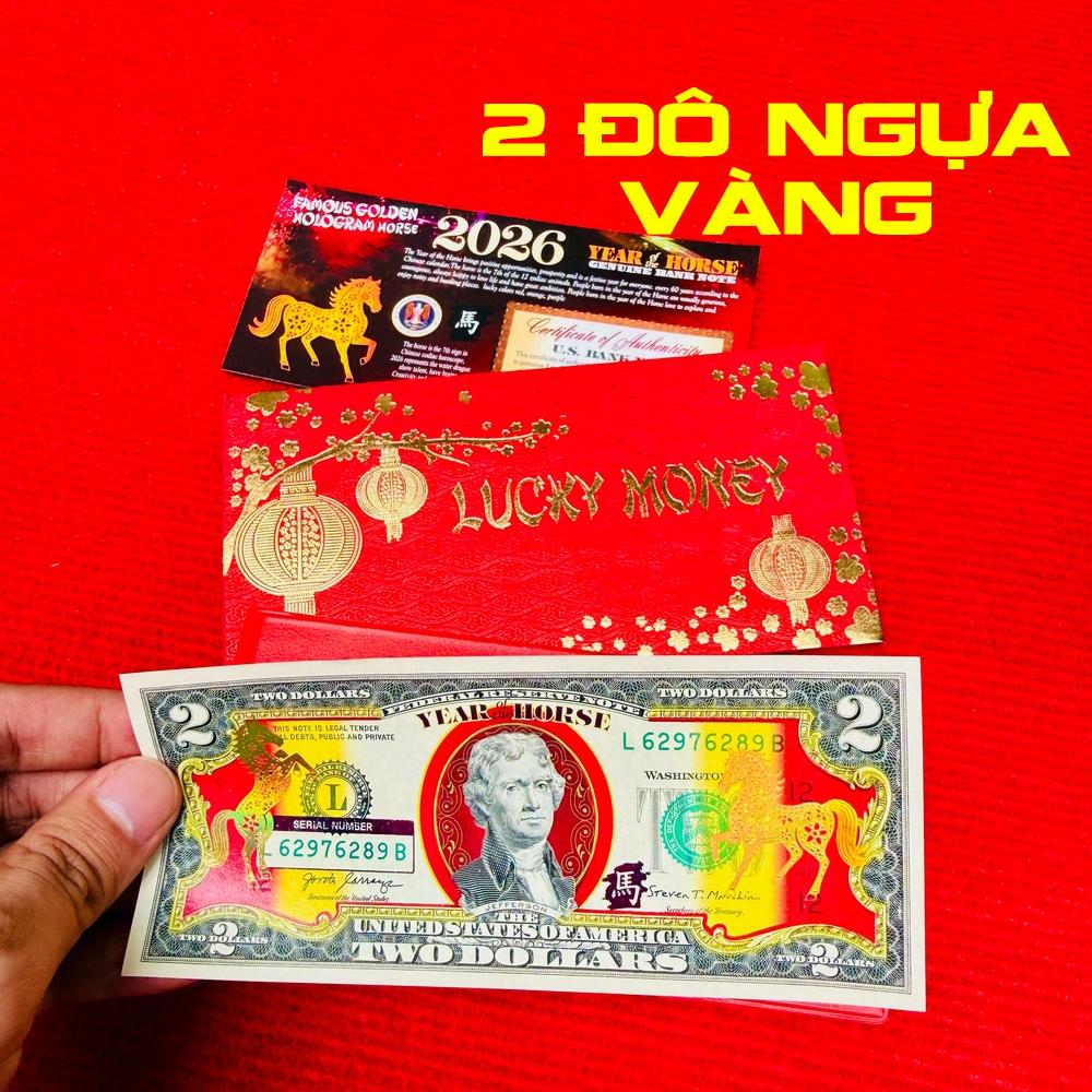 1. Tờ 2 đô nhũ vàng cao cấp hình con NGỰA